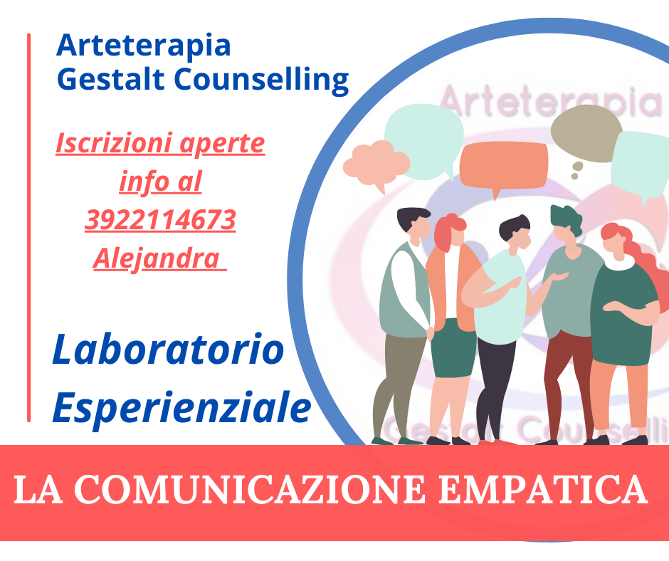 Laboratori Esperienziali di Counselling COUNSELLING di gruppo “Nessun uomo è un’isola, completo in sé stesso; ogni uomo è un pezzo del continente, una parte del Tutto.” (John Donne) Il gruppo di Counselling Gestaltico ha l’obiettivo di aiutare le persone a rimanere in contatto con sé stesse… leggi di più La Comunicazione Empatica Il Percorso è rivolto a chi desidera conoscere e praticare nella propria vita la Comunicazione Empatica realizzando una profonda trasformazione interiore con grande beneficio per se stessi e per le proprie relazioni…leggi di più Condividi: Fai clic per condividere su Facebook (Si apre in una nuova finestra) Facebook Fai clic per condividere su WhatsApp (Si apre in una nuova finestra) WhatsApp Mi piace Caricamento...